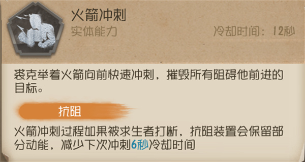 冲刺的过程中被求生者有实体效果的道具阻断,不会返还CD(等同于撞到地图中的障碍物),例如玩具商的弹射板车、入殓师的灵柩。