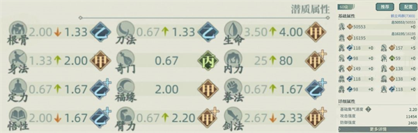 评价:生命内力合格,初始2.2集气,身法高,出手快,反击概率提升(理论上能在攻击后的下次攻击包括反击触发真伤),臂力合格,福缘影响回怒和暴击。但是根骨低不能带卸力