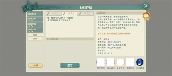 武学突破(包含在技能介绍中):