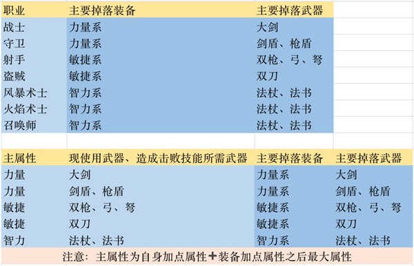 其中两个基础职业和主要属性点是影响掉落的关键因素。基础职业的影响是基础,主要属性点的影响是加成。