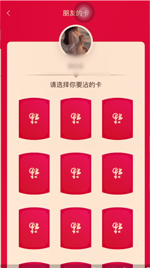 选择好友点击沾福气,再选择需要沾的卡即可。