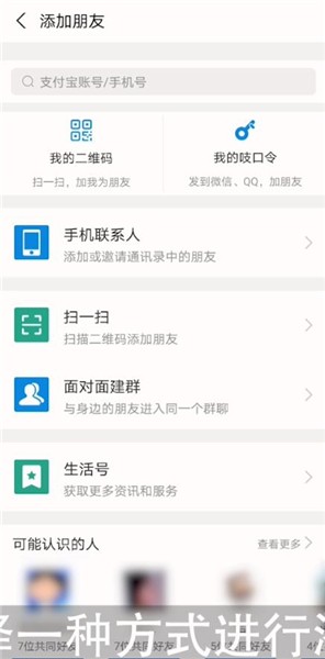接着选择一种方式进行添加即可,还可以直接输入好友的支付宝账号或手机号进行添加。