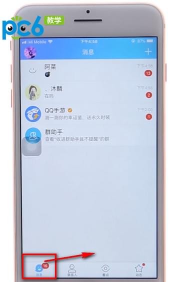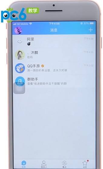 1.首先我们打开手机QQ,长按消息,然后将小红点拖出去,