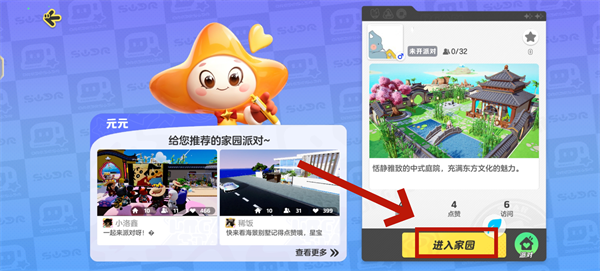 首先,点击首页的星家园按钮进入家园。