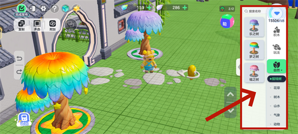 首先是【自然】组件。这一栏里除了有可以获得收益的摇钱树,还有花草、树木、山水、气象和动物等超多选择。