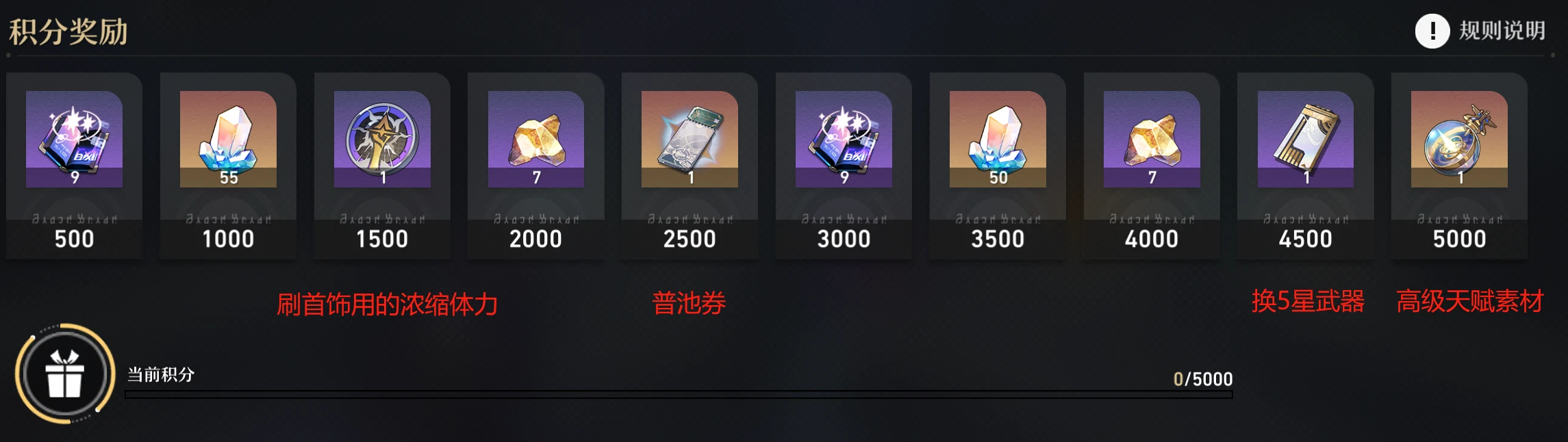 1、除去活动奖励和各种一次性奖励。月卡+每日任务每天可以获得150钻,模拟宇宙(肉鸽模式)每周一重置积分奖励。积分奖励给的东西非常有用,前面几周的奖励可以先留着,最多可以存6个,等到开拓等级40可以刷金色首饰的时候再使用