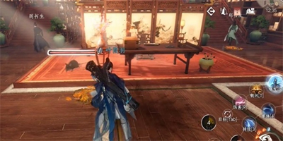 1、先根据线索进入纳猫之契四任务里,进入太学馆找到周书生他对话。