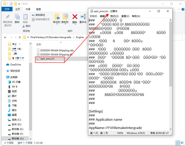 4、接下来我们按顺序依次打开Engine→Binaries→ThirdParty→EOS→epic_emu.ini等游戏目录开始设置中文;