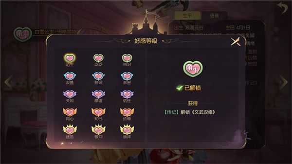 可以通过主页的约见,我们可以与每个伙伴进行交流。在这里我们可以看到每个伙伴的个人资料,了解他们的喜好、特长以及传记等,其中部分传记是需要提升好感度去解锁的