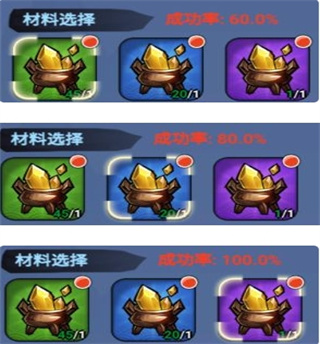 使用不同的材料所淬炼的成功几率也是有所不同的,土晶的成功率只在60%,炎晶的成功率在80%,魔晶的成功率在100%上,因此前期可以使用土晶进行淬炼,在淬炼达到一定次数后开始转变为使用魔晶进行淬炼,避免出现浪费材料。