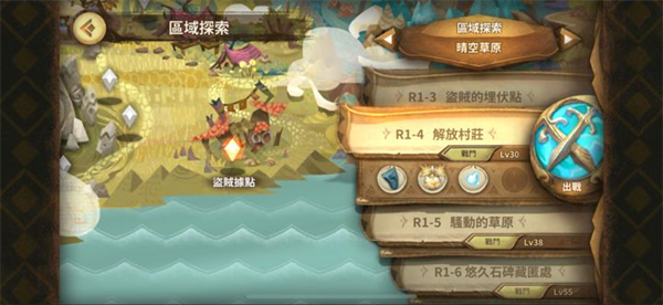 目前游戏有7大区域,每个区域都有它特定的素材,往下打会有更高阶的升阶素材,有6关普通素材关和2关特殊的蓝碎关,蓝碎只有首次通关有奖励,并且会依照玩家的等级调整小怪的等级。素材关可以无限打,等级建议从1到6关分别为6,14,22,30,38,55,但到下一个区域会增加两等,所以下一区域的等级建议为8,16,24,32,40,55这样,依此类推(55为高难度素材关,等级都一样),区域主要是农角色升阶的素材,但是我玩到现在,没什么农过,每日公会免费领取+后期钱没地方用所以都用买的,当然无聊或急需就可以去打一下,但是特定素材的掉落率没有很高(55素材关为必掉)
