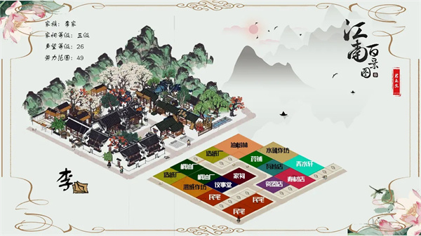 李家相对于其它三家而言,商业建筑数量较多,因此对于环境的需求更大,对布局的限制也就会更高一点,不过只要知府合理搭配装饰建筑,不在话下。