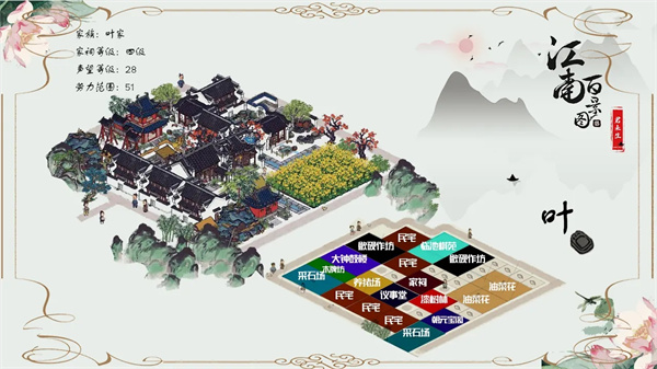 要问叶家的特点,那么就是“大”,如果追求高等级家祠,那么叶家绝对够你折腾一阵子了。相对于其他家族,叶家突出的就是娱乐建筑比较多,而且家族建筑2*3的比较多,对于势力范围要求大,进而对知府的市场销售数量基数要求大。