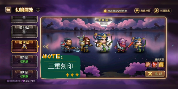 3、幻境深处将一期一期结算,每期都具有不同的buff效果。