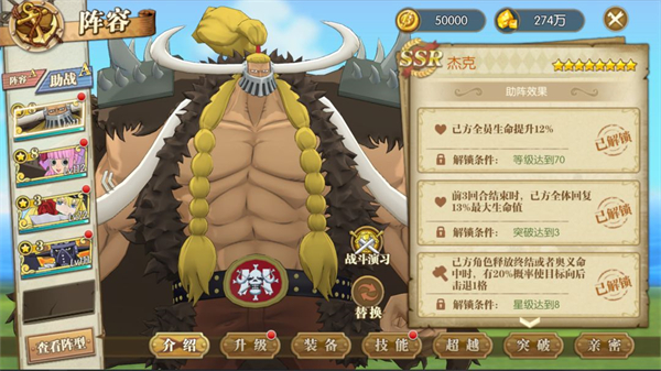 因为佐乌&空岛超新星阵容的存在,导致速度在战斗中是非常重要的属性,所以我选择了新世界佩罗娜、凯文迪修、烬和杰克作为助战。