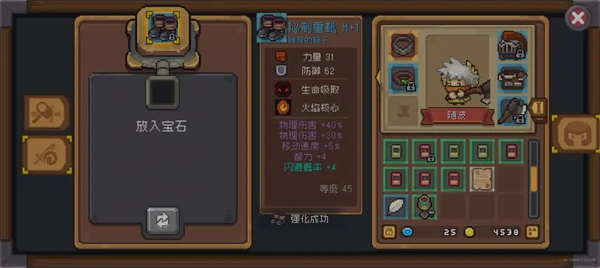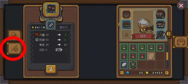 女铁匠,勾选左侧第二栏,放入装备,磨炼石