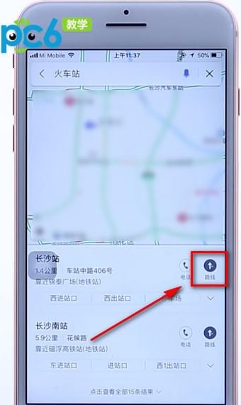 3.点击后方的路线功能,就能看到导航路线了