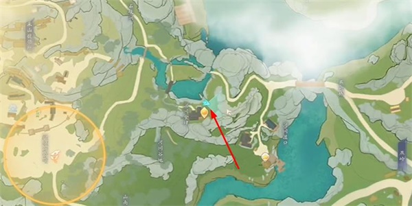 1、进入游戏后打开地图,然后前往下图标记位置领取成就