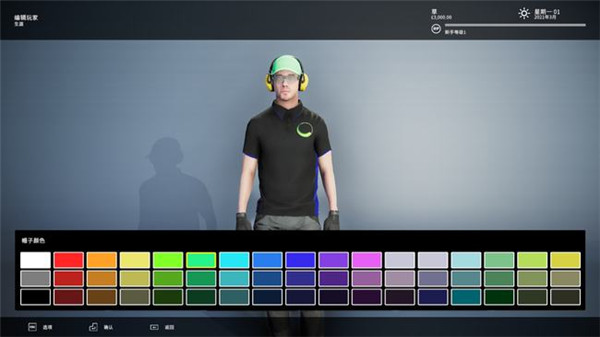 2、接下来我们要做的就是完成对角色的形象设计,并购买自己在割草路上的首款座驾。于是,为让“人草合一”我特地给小哥配上了一顶绿帽子,而割草机我则选择了带有收集槽的“Estate 2084H”号。