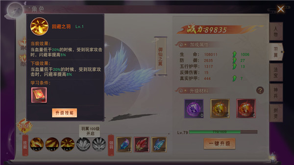 羽翼升级到指定等级,可以解锁新技能,新技能可通过羽翼技能书提升技能效果,羽翼的技能可以大幅增长战力。
