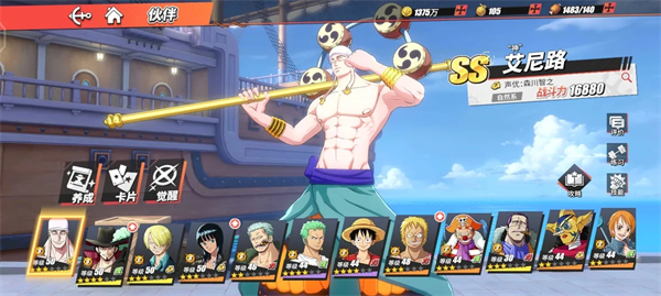 1、游戏初期目,人物ss价格的只有鳄鱼(力)、艾斯(技)、艾尼路(心),还有一个大概在35级才能系统累计任务获得的ss黑足山治(心),黑足偏向于竞技场。这几个人物是前期pve和pvp都比较厉害的,并一定要培养的人物,如果一个不小心抽卡欧了,那就别犹豫,资源拉满,全给ss就可以!