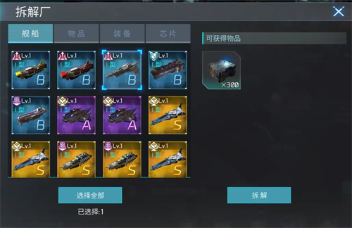 前期资源不够,先培养A船,后面再换S船。就会用到下面的设施,拆解厂。要注意的是,舰船用的图纸是不会返还的噢。