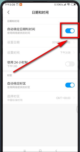 2.再将【自动确定日期和时间】右侧的开关关闭