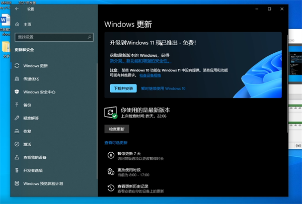 2.在系统设置中点击更新与安全选项,随后在windows更新便可以查看可选择更新windows11,点击下载并更新便可更新新的系统,新系统可以在后台中更新下载。