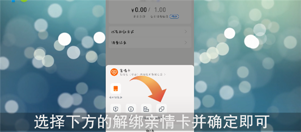 点击右上角三点;选择下方的解绑亲情卡并确定即可。