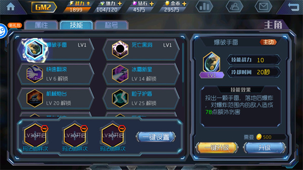 随着角色的等级提高可解锁更多技能,合理搭配技能并进行升级可以获得更高的伤害和技能效果。