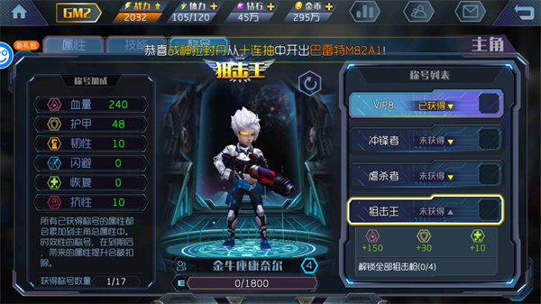 完成相应的任务条件可以获得称号,称号不同获得的属性加成不同。