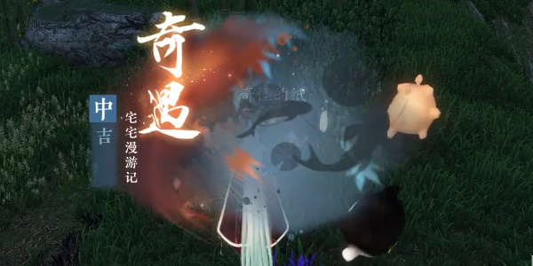 2、随后触发中吉奇遇宅宅漫游记,当宅宅喵们散开后将地上奇怪的纸捡起来