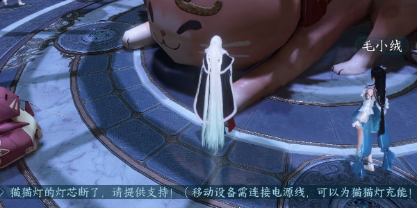 6、然后根据指示过剧情,得知猫猫灯的灯芯断了,移动端需要用充电器连上设备