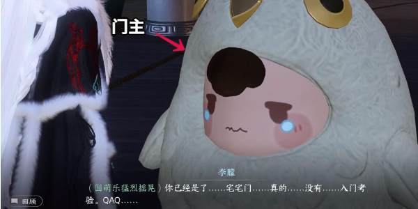 9、过完动画后跟着圆萌乐皮套的门主对话,即可加入宅宅门完成奇遇