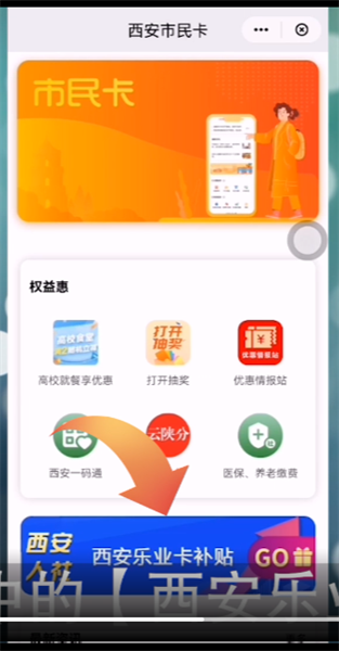 2.点击西安市民卡界面中的【西安乐业卡补贴】。