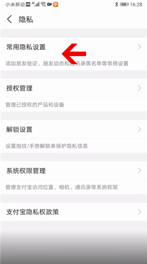 这时点击隐私,点击常用隐私设置,