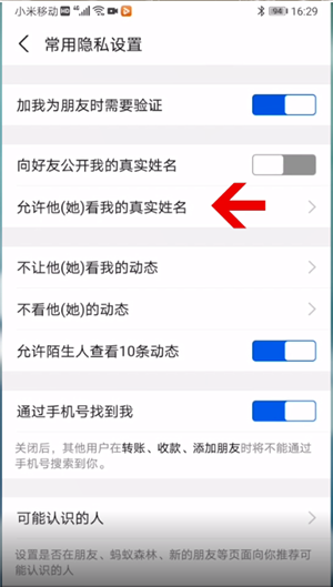 这时滑动按钮关闭向好友公开我的真实姓名选功能即可。