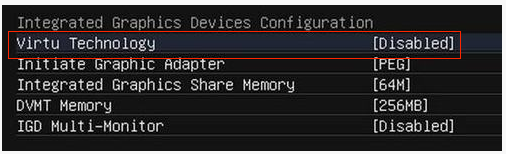 1、进入BIOS页面后,找到“SETTINGS”——“Advanced”——“Integrated Graphics Configuration”——“Virtu Technology”选项,把“Disabled(禁止)”修改为“Enabled(允许)”;