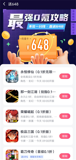 也可以进入【0元首充】,里面都是免费送首充的游戏。