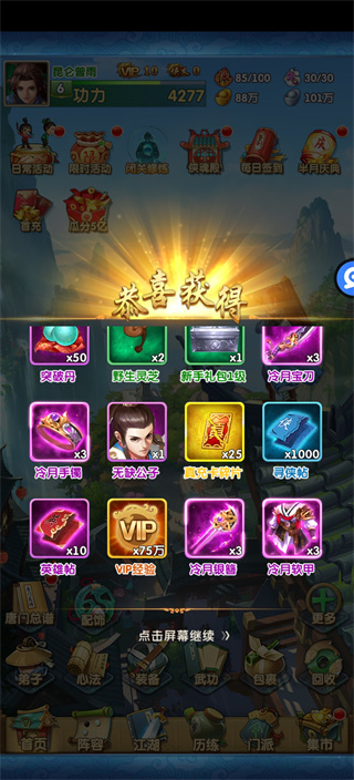一进入游戏就有领到手软的高级游戏道具,直升VIP10,简直不要太爽,而且可以直接跳过繁琐的新手引导,有些手游的新手引导简直不要太长,影响游戏体验。