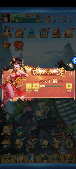 让我们进入游戏中来看一看,小编选择的是优惠排行榜第一的大掌门2(5亿充值修改器),一进入游戏,对味了,不是标题党,是真的BT版手游。