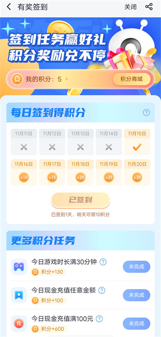 平台币可以直接用于游戏消费,每日签到、完成日常任务都可以获得积分,积分也可以用于换取平台币。