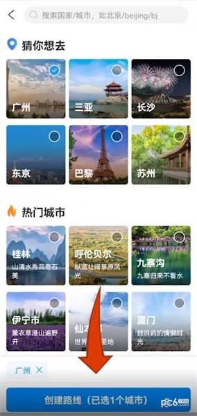 选择你想去的城市,点击【创建路线】;