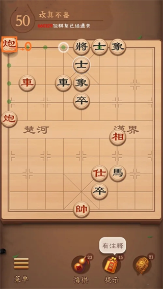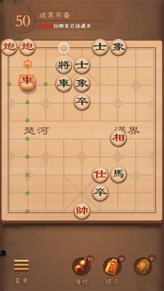博雅中国象棋最新版是由深圳市东方博雅科技有限公司发行的一款象棋对战平台,这款游戏以其精美的画质和强大的游戏系统赢得了广大玩家的好评。游戏内提供了多种多样的玩法,其中残局玩法备受瞩目,同时也引起了玩家们的爱恨交加。一方面,残局玩法被认为极具挑战性,让人们感到兴奋和激动;另一方面,有些关卡确实让人头疼,需要玩家们花费更多的思考和策略来解决。很多玩家反映博雅象棋残局中初入江湖最后一关第五十关攻其不备很难突破,今天小鸠就为各位带来攻其不备的具体攻略,一起来看看吧!