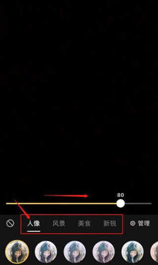 3、点击“滤镜”进入后,我们可以看到页面的下方有很多的滤镜可以选择,我们可以选择自己喜欢并且适合自己的滤镜。滤镜选择的上方还有滤镜的度数可以选择。