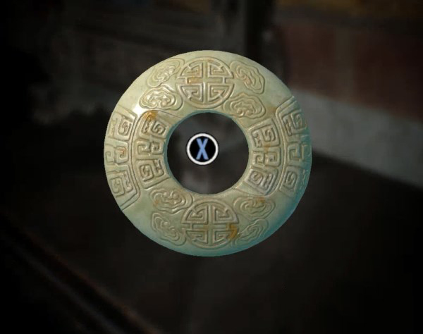 3、开门进入听雨斋,有很多茶杯的桌子上,拿到【蚩尤玉环】。