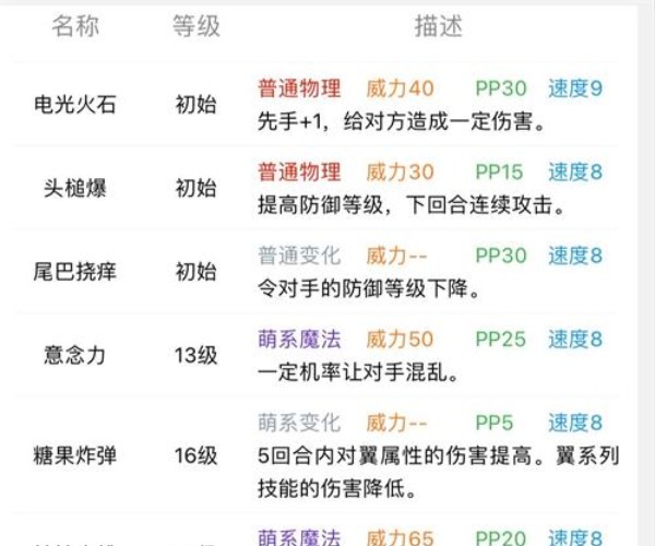 1、初始技能:电光火石、头槌爆、尾巴挠痒