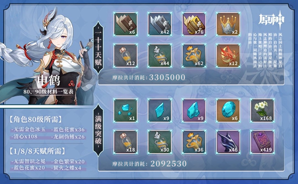 以上就是原神申鹤突破材料一览了,申鹤在突破时使用最多的就是骗骗花蜜和清心了。
