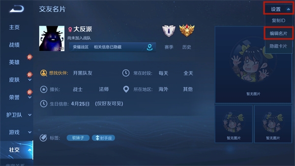 1、首先,进入王者荣耀主界面,点击您的游戏头像,进入信息界面,选择“社交”栏,此时我们已经可以看到您原先设置的生日信息。