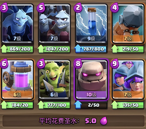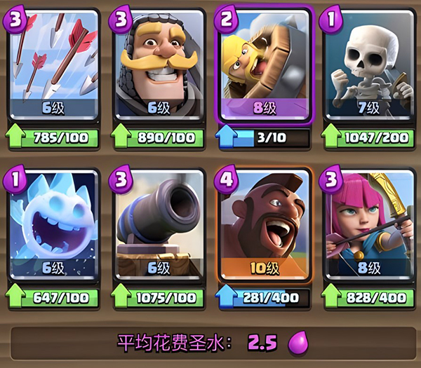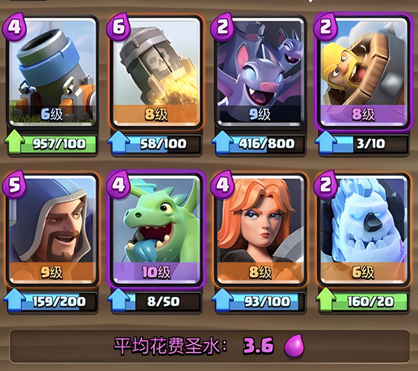 这是非常经典的卡组了,毕竟现在使用加农炮的玩家比较少。虽然对空能力有点弱,但是配合弓箭手以及冰淇凌其实还是很好化解敌方空中单位的。虽然说看着比较鸡肋,但是用好了依旧是非常强力的卡牌组合。